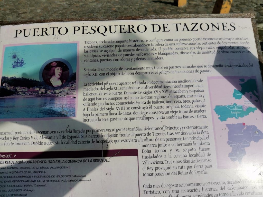 Una de los motivos por lo que es más conocido Tazones es que allí desembarcó de joven Carlos V, el diecinueve de septiembre de 1571 empujado por la mala mar ese día,